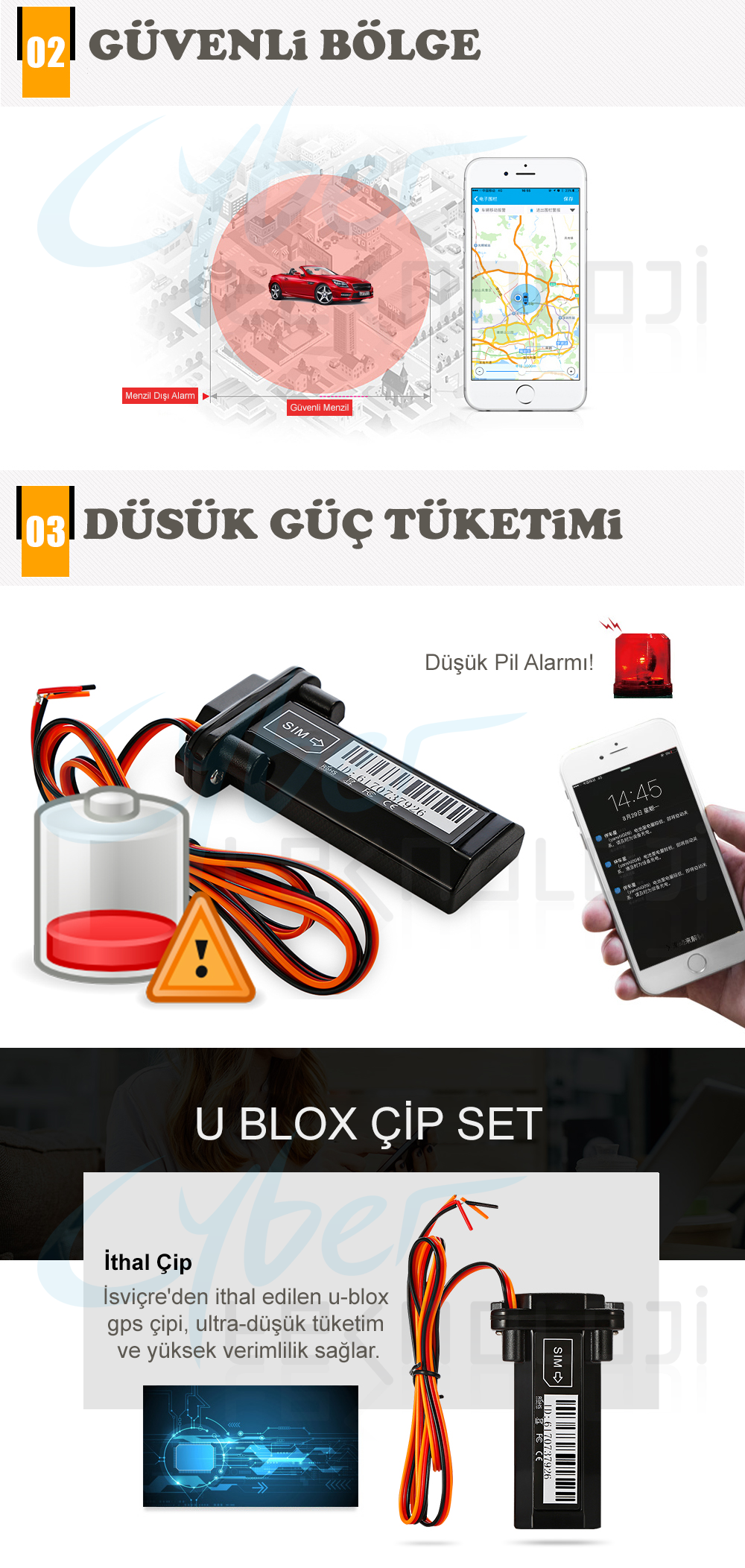 Tamamen kendi ithalatımız olan araç takip sistemi Tüm araçlarla uyumlu olup. Aylık ve Yıllık bir ödemesi bulunmamaktadır. Sim Kartınızı takıp güvenli bir şekilde akıllı cep telefon uygulaması ile kullanabilirsiniz.